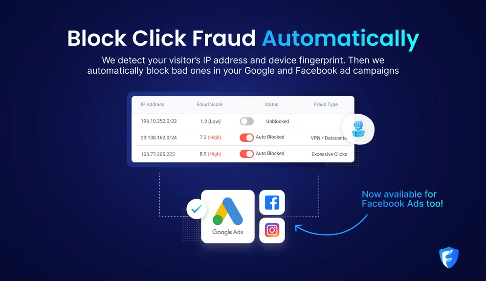 Thanks to Fraud Blocker, you can confidently run Google and Facebook ad campaigns without losing a single cent to bad clicks.