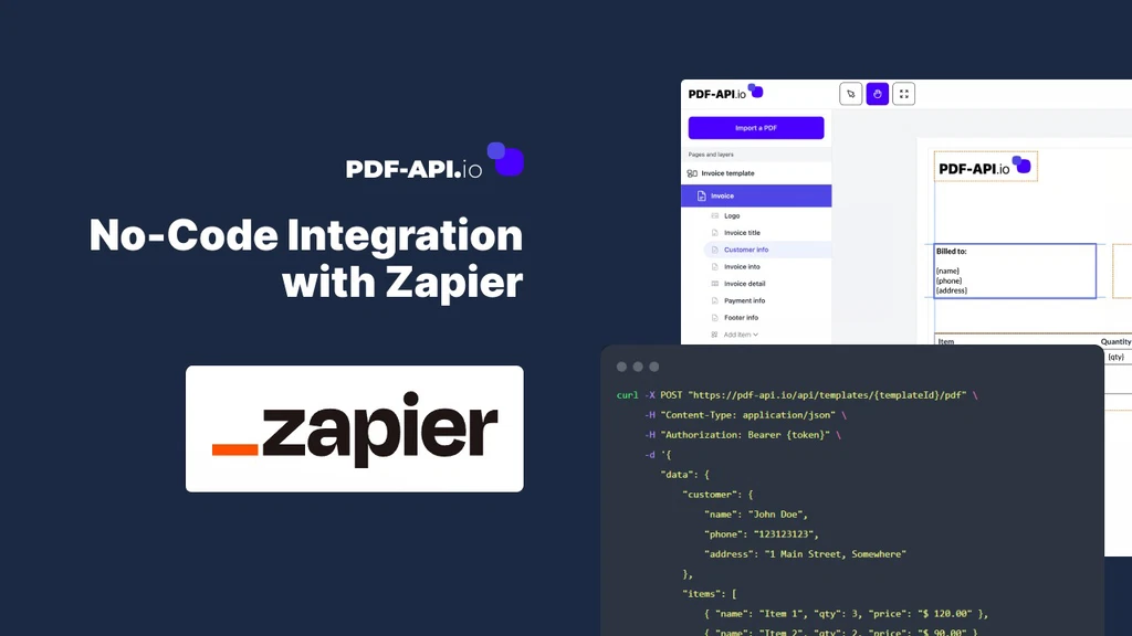 No-code Zapier integration to automate PDF generation without technical expertise.