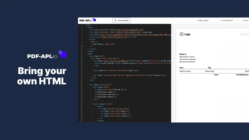 For developers, PDF-API.io offers an advanced HTML editor, perfect for creating highly personalized PDFs with precise control.