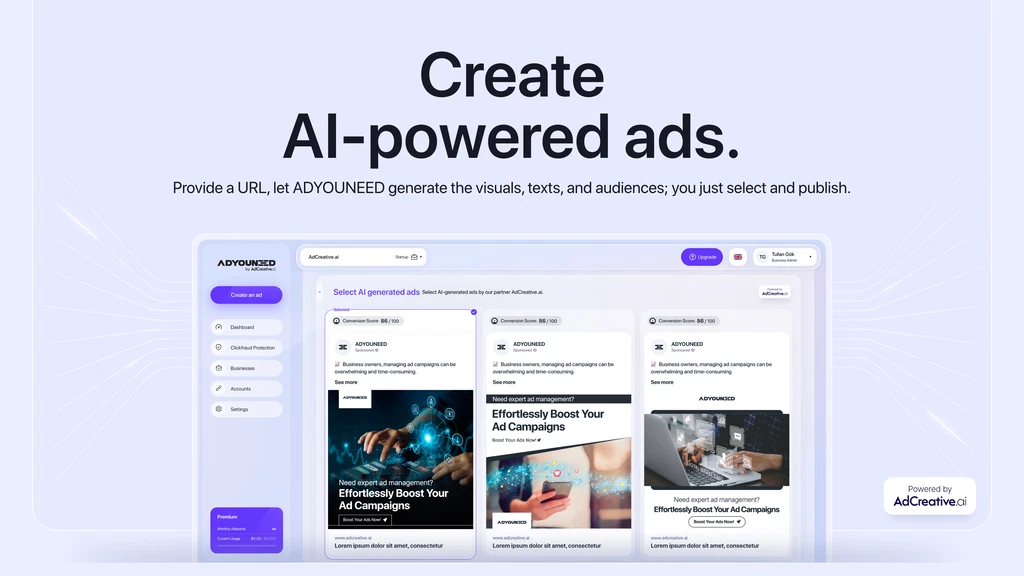 ADYOUNEED is jam-packed with features to make your life easier, like a real AI for optimization.