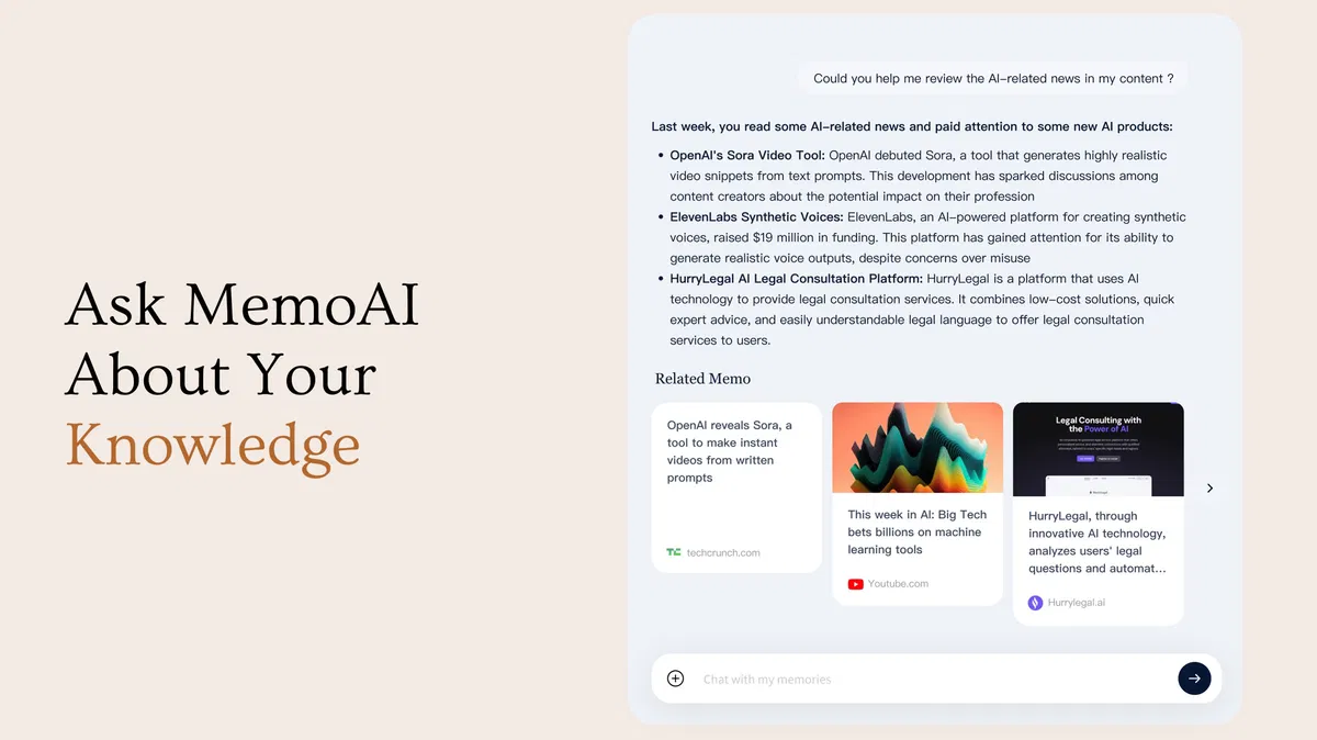 Feeling buried under digital information overload? MyMemo's AI-driven second brain organizes and retrieves your data instantly, turning chaos into clarity so you stay focused on what matters.