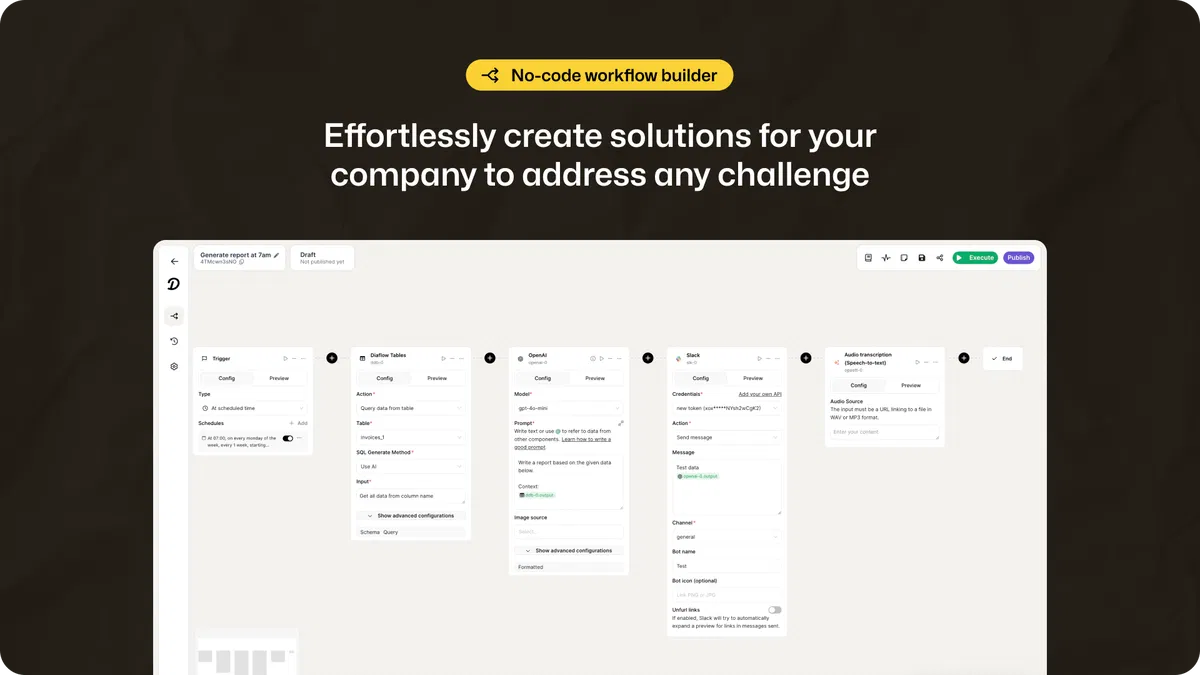Manual workflows feel like an obstacle course and AI integration can be overwhelming. Diaflow lets you build AI-powered apps and code-free workflows to streamline your business.