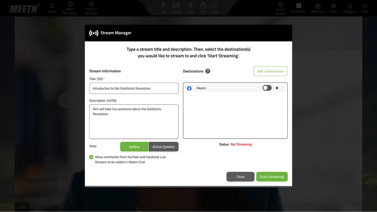 Engage with comments from YouTube and Facebook Live in your meeting room