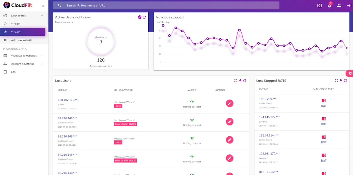 Protect your site’s data and users with smart filtering, real-time analytics, and CMS integration
