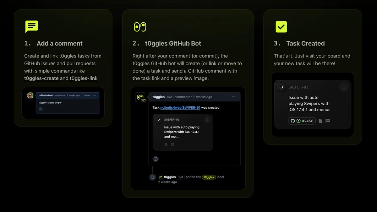 Sync GitHub issues and t0ggles tasks automatically to manage your coding sprints alongside other projects