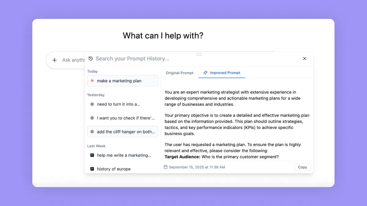 It's hard to get great AI outputs without editing your prompts over and over. Good thing Pretty Prompt works right inside your browser, so you can level up any prompt in seconds.