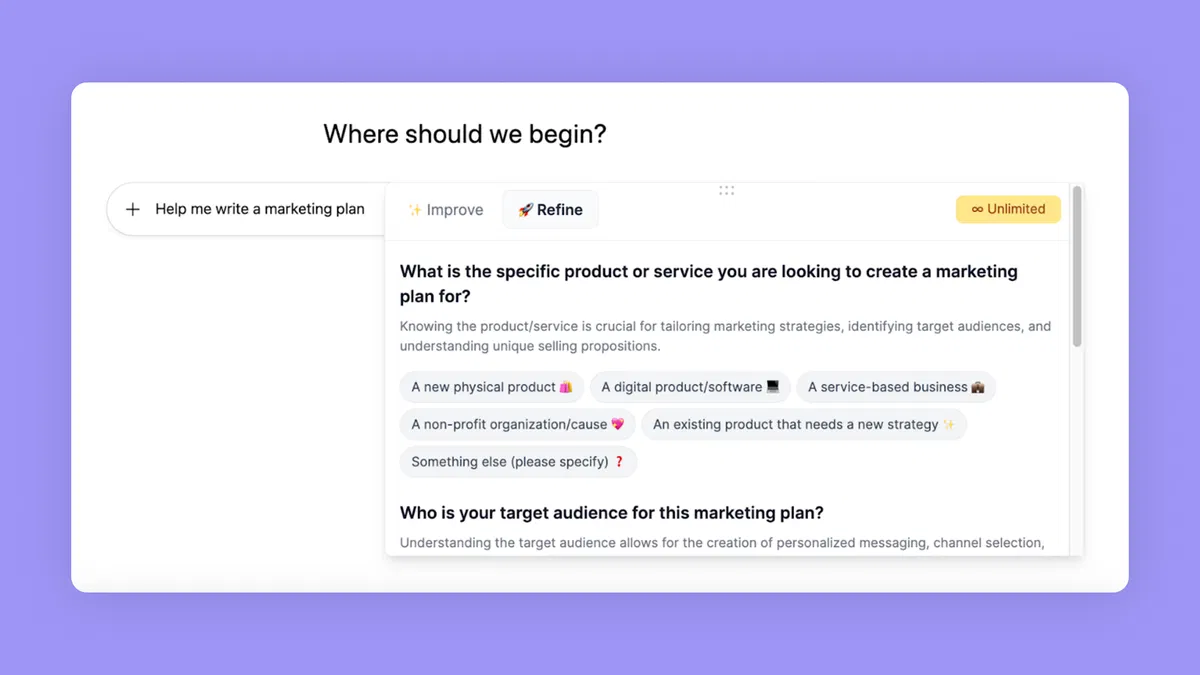 • Add extra context by answering follow-up contextual questions to elaborate on your large language model